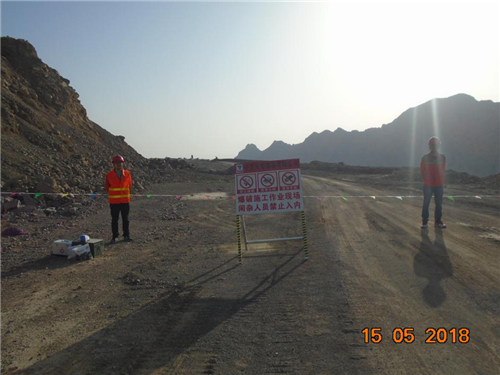 本次评价选择宁夏赛马水泥有限公司套门沟石灰石矿南采区开采爆破工程作为评价抽检施工现场,评价组对项目的采掘施工现场及安全生产条件进行了检查。 通过实地勘查和问询相结合的方式,检查采掘施工现场及生产条件,检查项目在执行公司各安全管理制度的有效性, 从而反映宁夏天宏爆破有限公司露天矿山采掘施工作业过程与国家法律法规、规程标准的符合性情况。